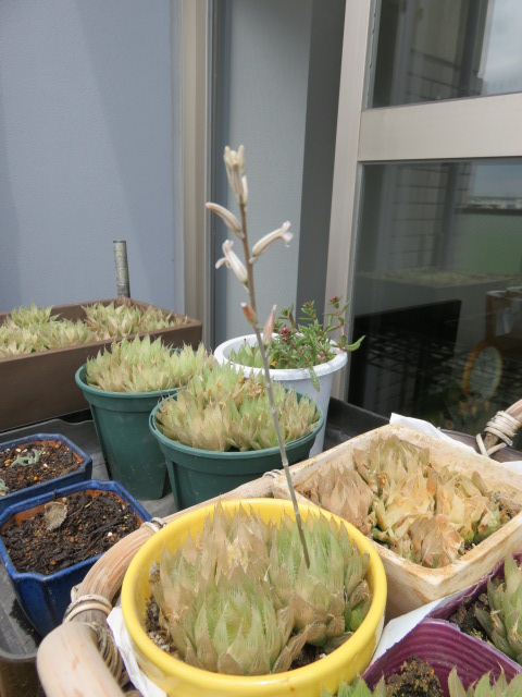 あと数日で引越しの為、簡易に棚を作って鉢を置いています。