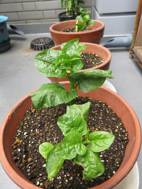 スーパーで買ったツルムラサキの先端を挿し芽。