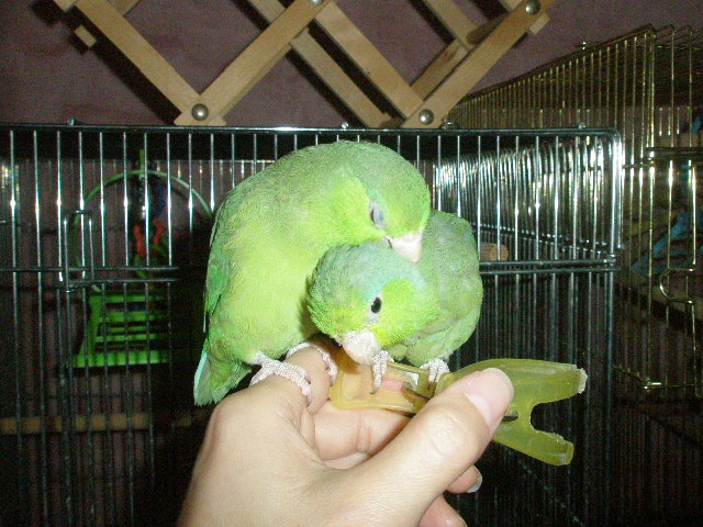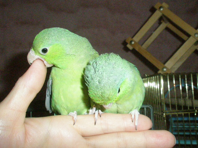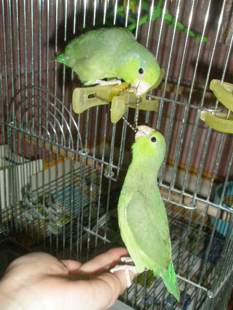 2羽のマメルリハインコの日常やベランダの様子 2011.4.3にお迎え。 同年2月頃、静岡県で産まれました♪