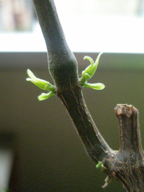 先日全部葉を切り落とし枝だけにしちゃったパキスタキスに新葉が出てきました♪