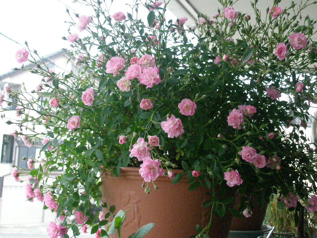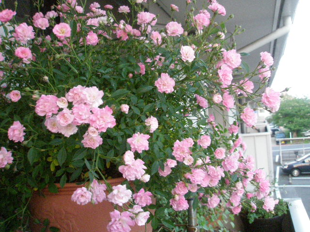 室内から見たピンク色・ミニバラが綺麗だったのでベランダに出ましたが。。。