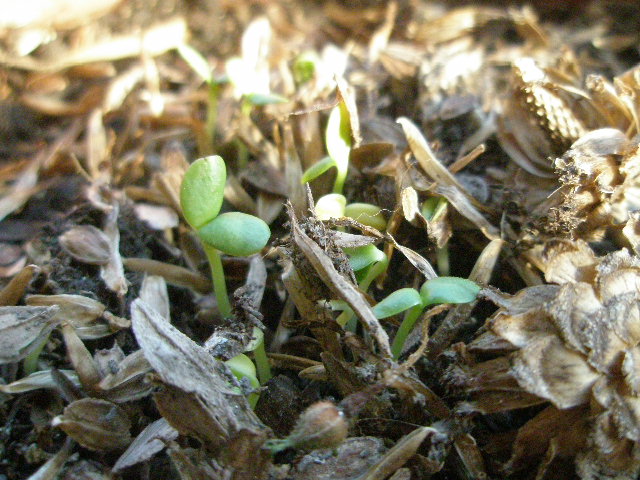 2・3日前適当に蒔いたヒャクニチソウの種。