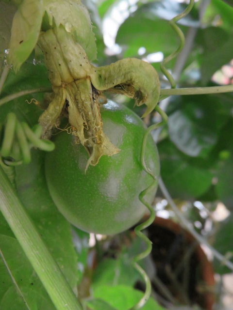 2つ開花したパッションフルーツですが、1つ受粉に成功したみたい♪