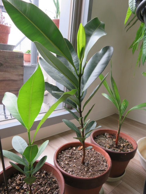私の部屋管理のマニラパームとテリハボク。元気よん♪