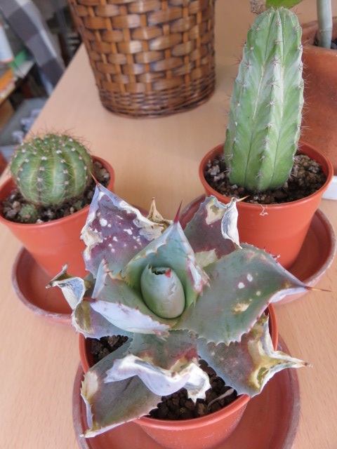 静岡で購入した謎の多肉は雪に当たっても元気ですが、アガベはちょっと負傷・・・