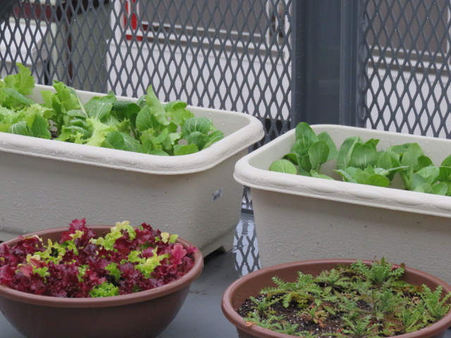 あちゃー。ほうれん草がヒヨドリに食べられている!!!