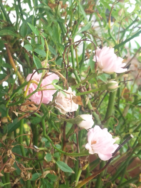 今年はめっちゃ不調の極小ミニバラ。あらっ、咲いていたわ♪