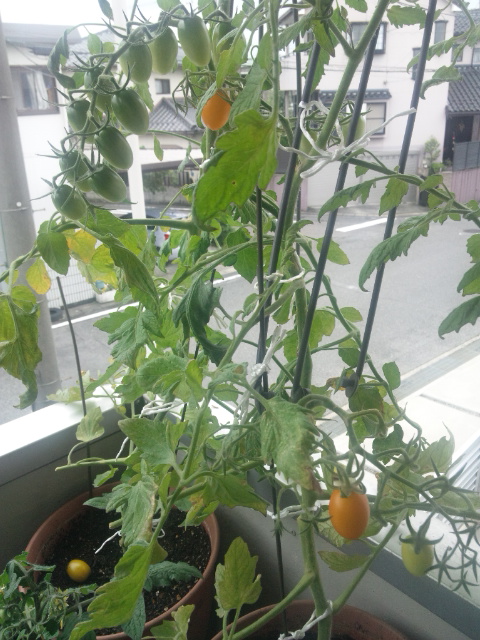種まきトマトの実も大きくなっているのですが、部屋からは乗り出さないと見れない&撮れない場所にあるんですよね・・・