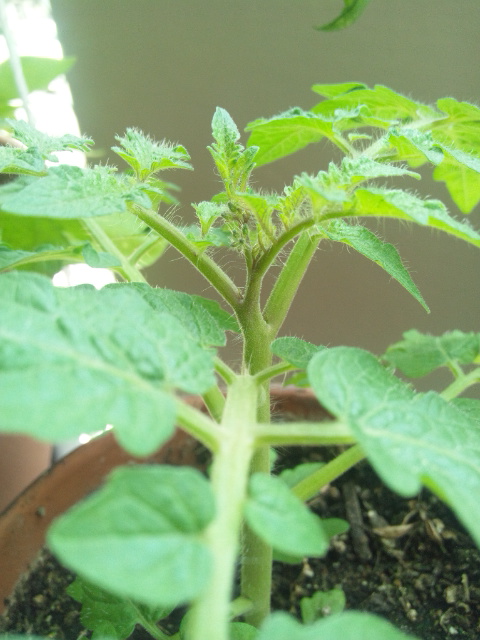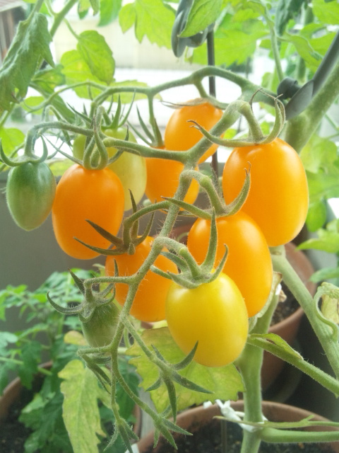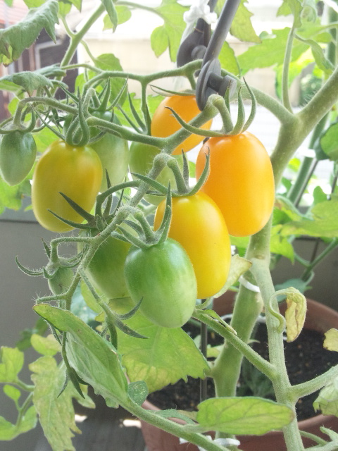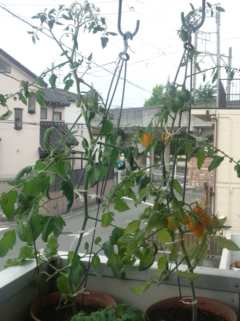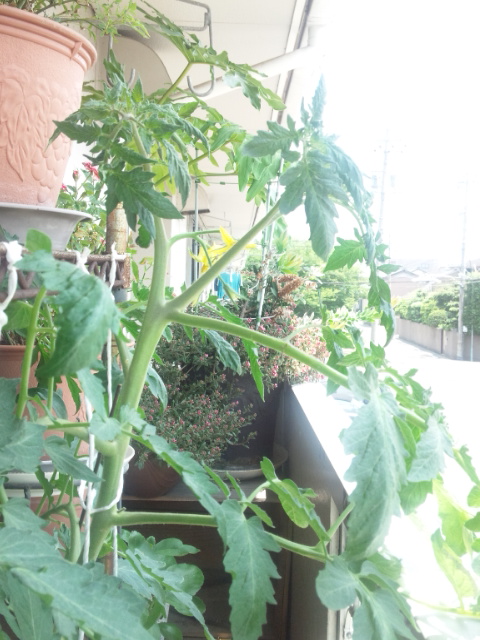 矮性ミニトマト。グィ~~ンと伸びたよ。