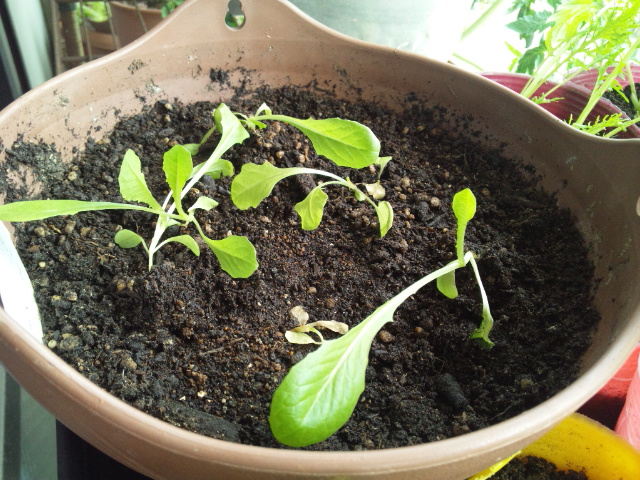 土寄せしているのですが、それでも根元がグラグラなレタス。土を足した方がいいかも~。