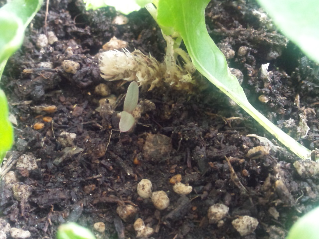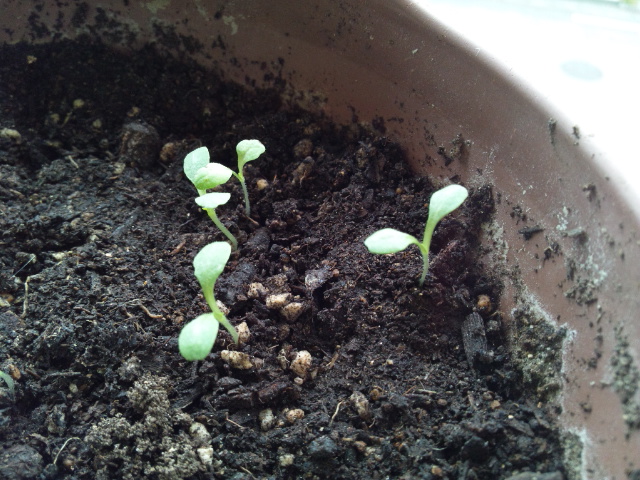 ベビーリーフを移植した鉢には当初ポーチュラカを植える予定でしたが「出ればラッキー♪」くらいの気持ちで古い種を全部蒔いていました。3~5年位前のキバナコスモスや風船カズラ、センニチコウ、ジニアなどなど。1週間経っても発芽しなかったので「もう死んじゃった種だったのねぇ~」と諦めベビーリーフを植えました。