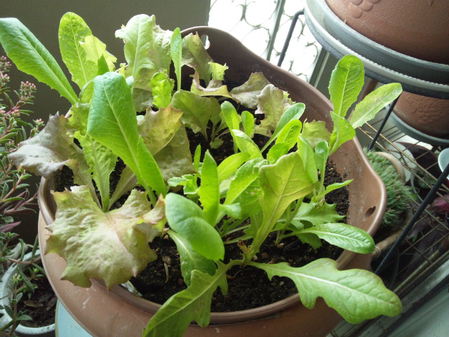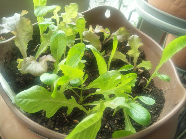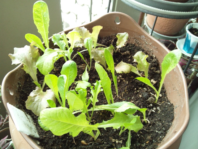 固まって発芽したレタスを、良い間隔に移植しました。2本根っこが切れちゃったかも~(汗)