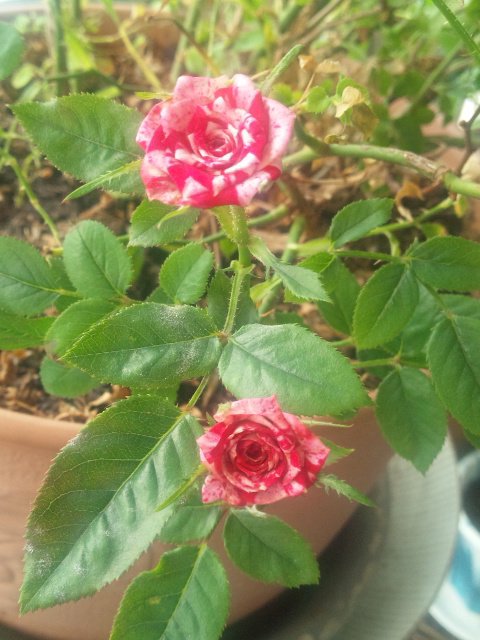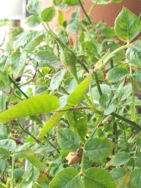 マーブル・ミニバラにはまだ害虫がいて、細かな糞が落ちています。はぁ~。