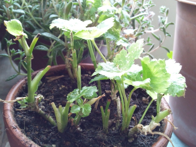 せっせと収穫している三つ葉。放置しているとすぐに蕾が上がってきます。