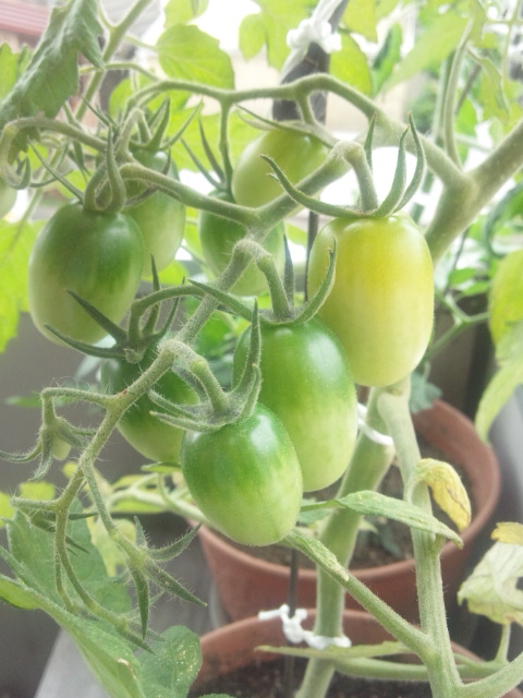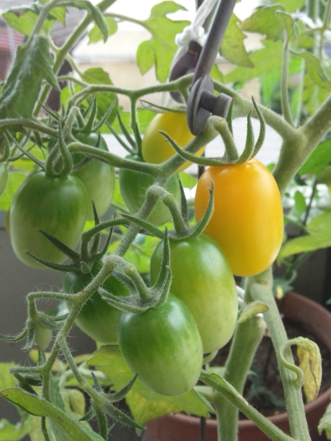 ミニトマト(アイコ・イエロー)。ほんの少しだけ色付いてきたかも~♪