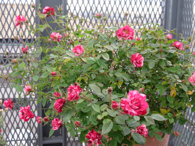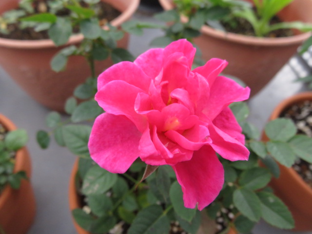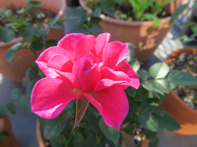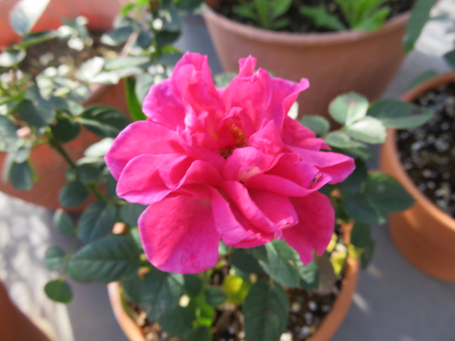 ピンク色のミニバラ。結構開きました♪