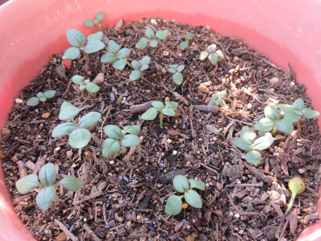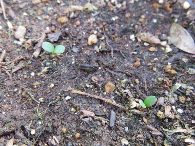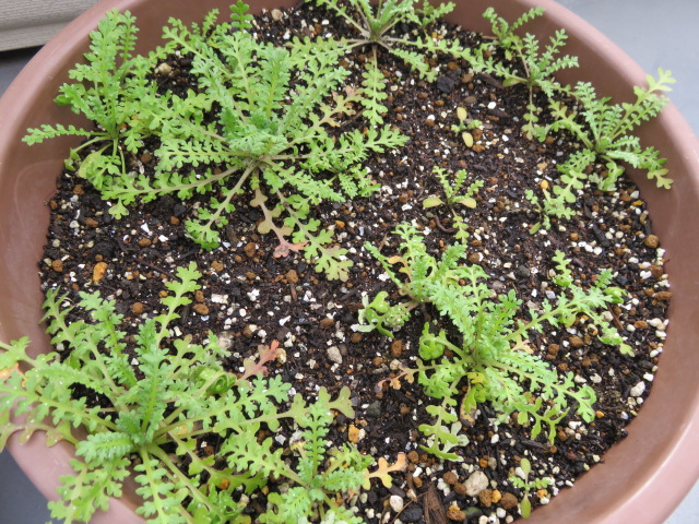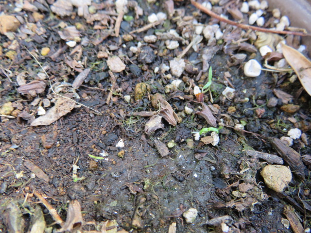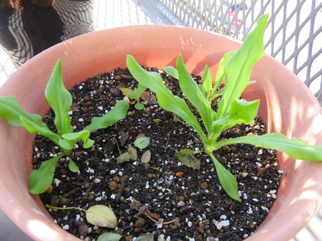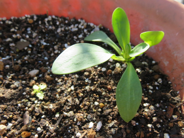 蒔く時期遅かったので期待していませんでしたが、発芽した八重矢車草と