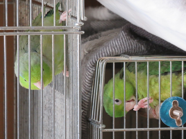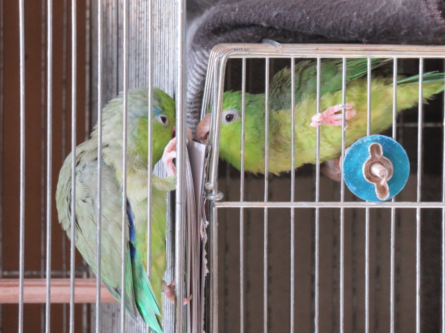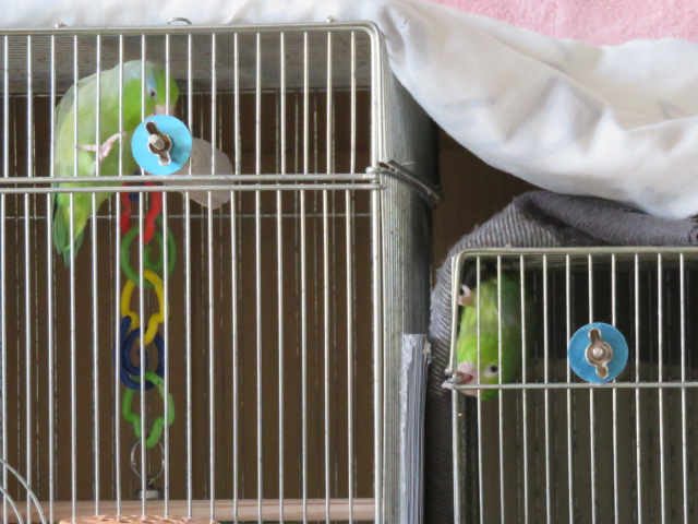 2羽のマメルリハインコの日常やベランダの様子
