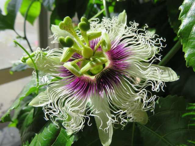 ヌクヌクな室内では、2個目のパッションフルーツが開花しました。