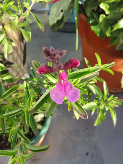 3つ蕾が上がってきたチェリーセージ、青。どんな花色なのか楽しみ♪