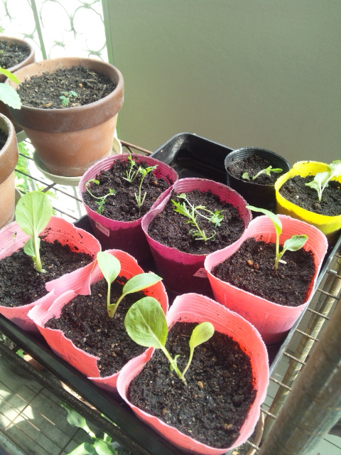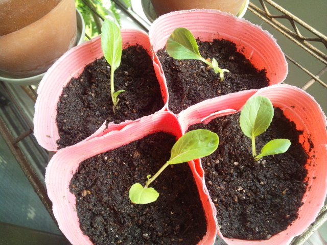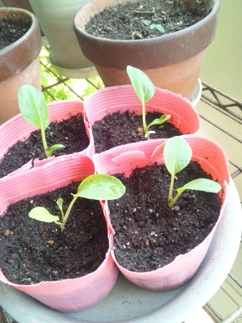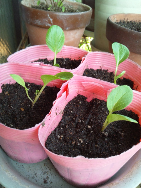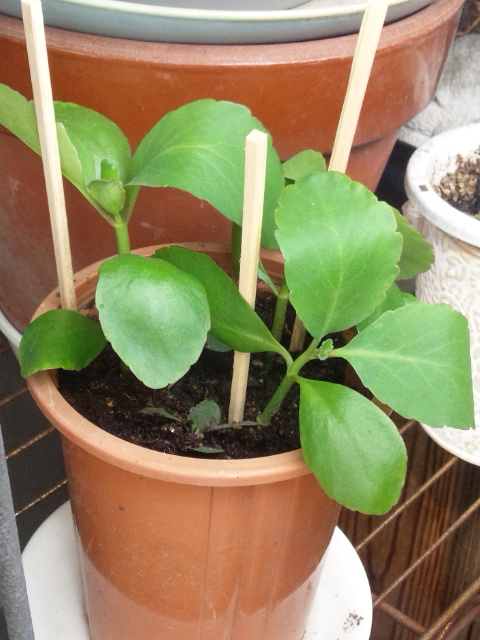 青虫の被害が少なかった青梗菜を4つ、ポリポットへ移植しました。
