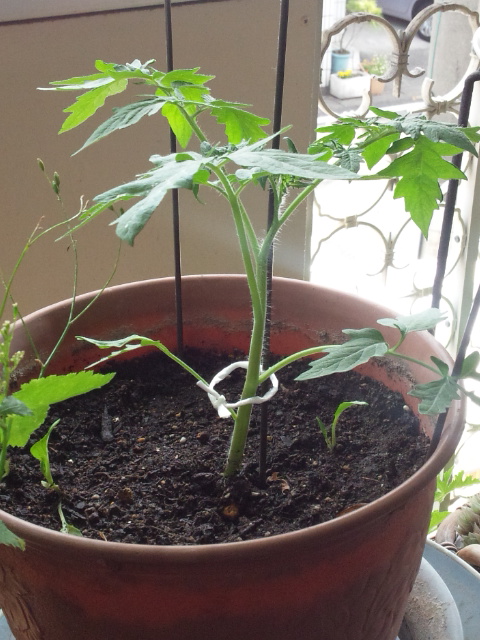 種まきトマト。あまり日が当たらない場所ですがいい感じ♪