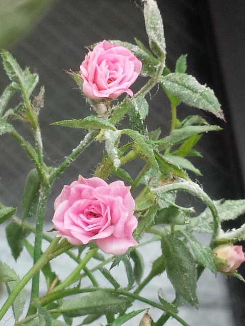 うどん粉病だらけの極小ミニバラもポツポツ咲き出しました♪