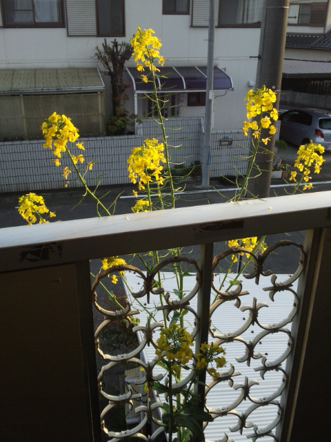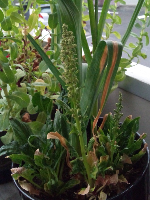うな垂れているほうれん草の花。