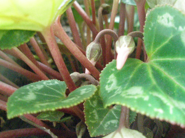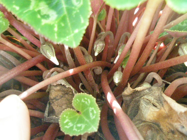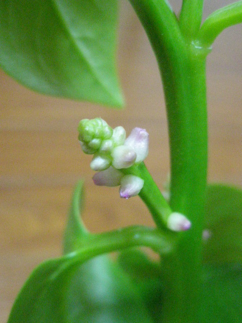 蕾は少しふっくらしましたが、まだ葉の下に隠れています。