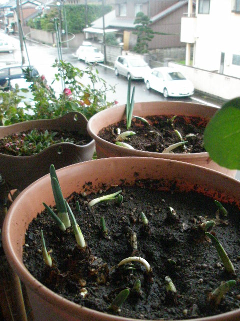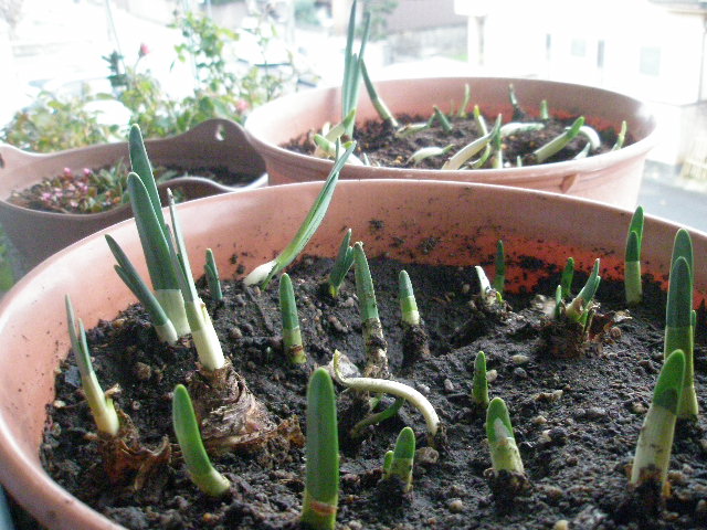 暖かい日にすれば良いのに・・・こんな日にわざわざしなくても良いのに・・・とは思いつつ「思い立ったが吉日!」とばかりに芽が出てきた水仙を植え付けました。