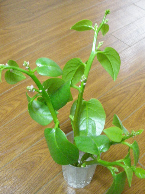 寒そうにしてたツルムラサキの先端をカットし室内で管理することにしました。