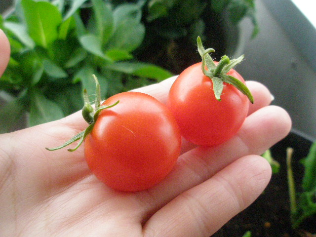 いい感じに色付いたので、収穫したどぉーーーーー!ミニトマト。