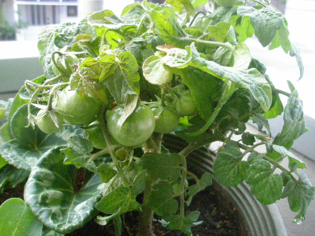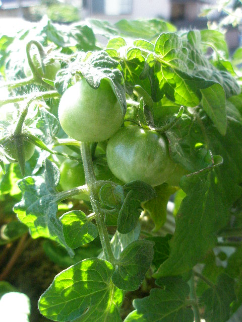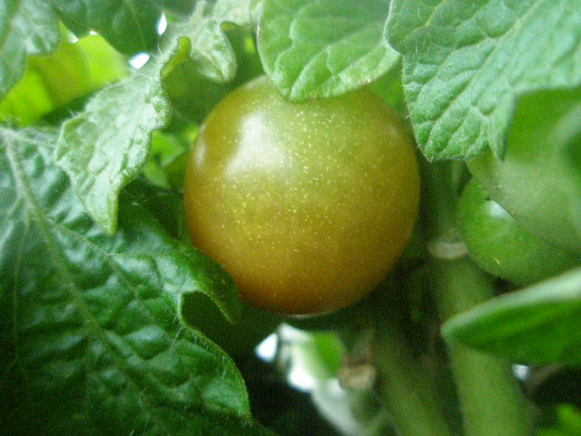 そうそう、少し色付き始めた矮性ミニトマト。嬉しいなぁ☆
