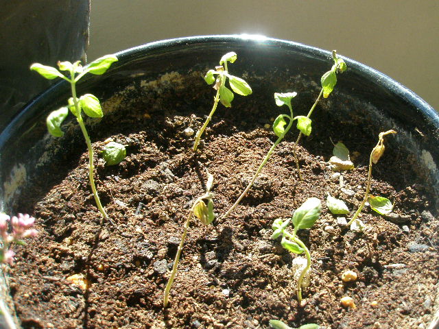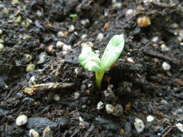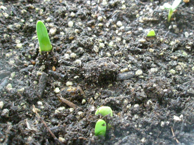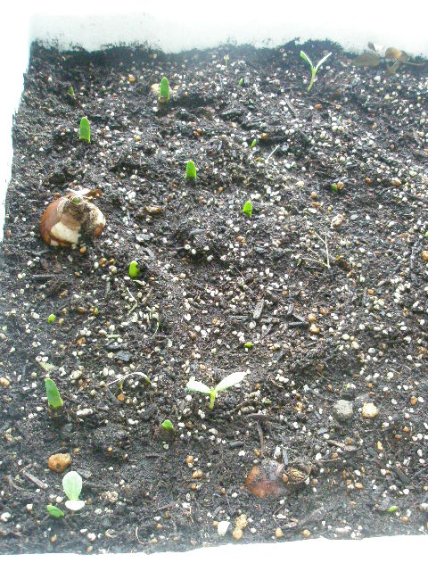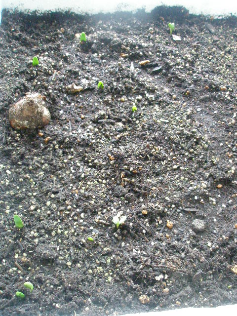 先日球根を植えた時に一緒に蒔いたサフラサー。