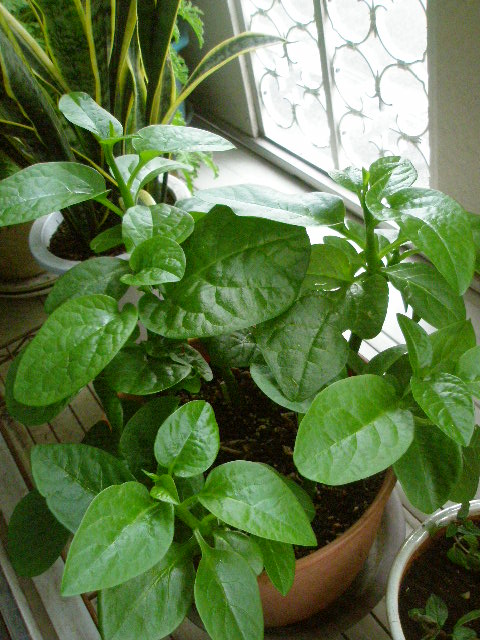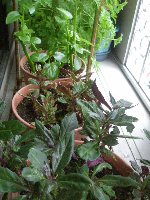 野菜たち。奥からツルムラサキ・金時草・金時草
