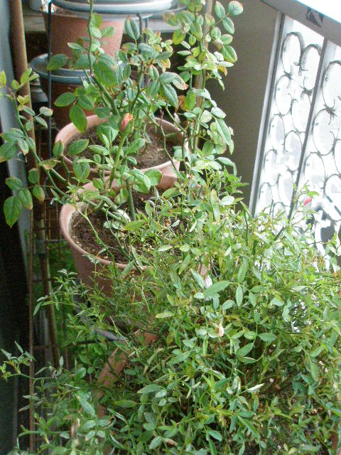 今年とっても生長が悪かったセロームとミニバラ。枯れなきゃいいけど・・・(涙)