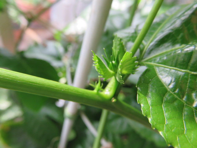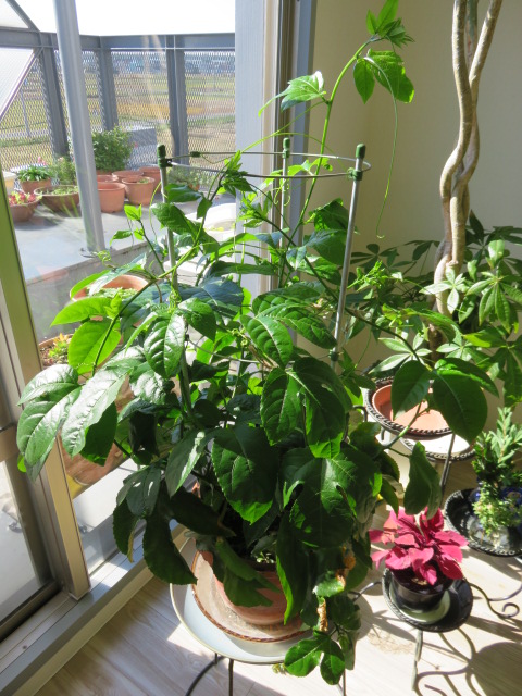 室内管理のパッションフルーツですが、グングン蔓が延びてます。