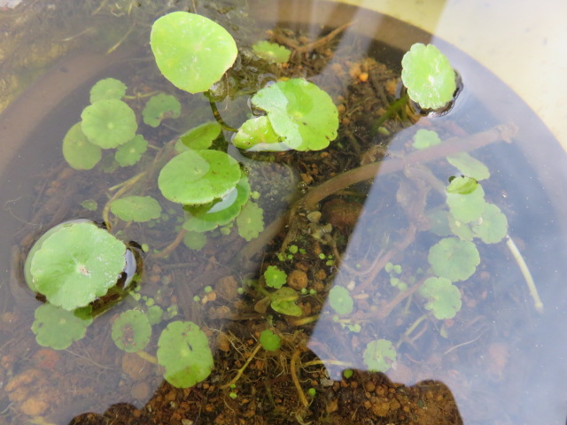 「鉢を水に沈めた方が冬越ししやすい」とどこかで読んだので、鉢増しし沈めたウォーターマッシュルーム。