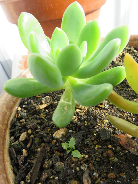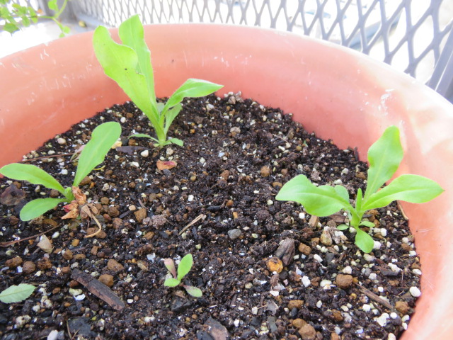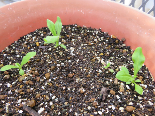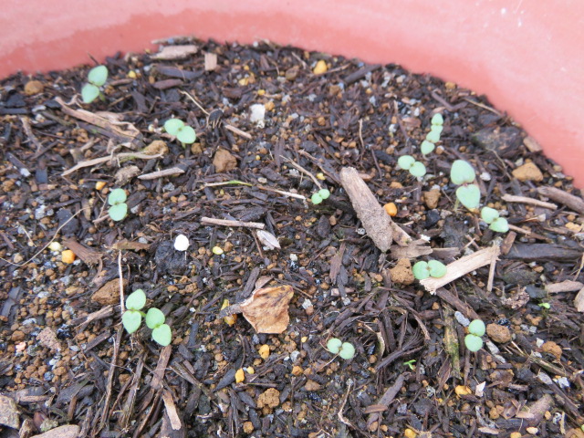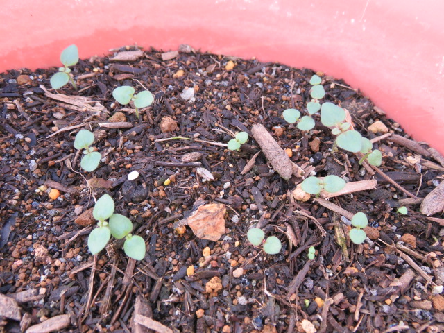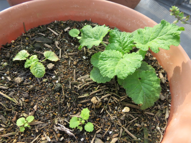 こぼれ種のマラコイデス。とりあえずここには5株。1株、急に大きくなりました♪