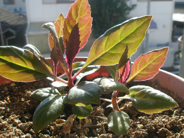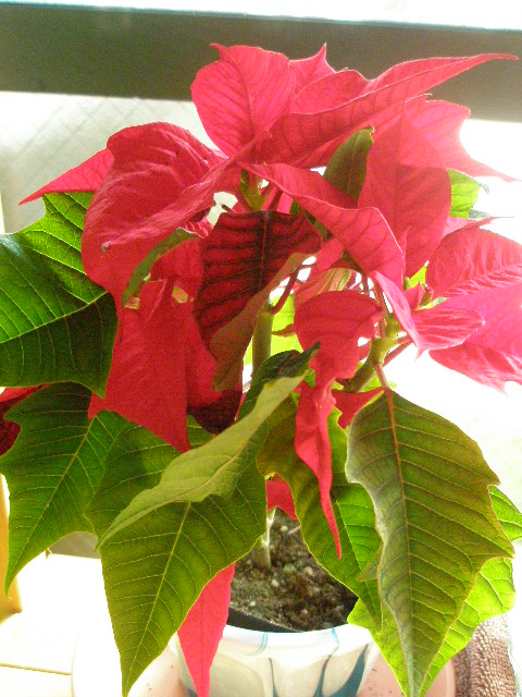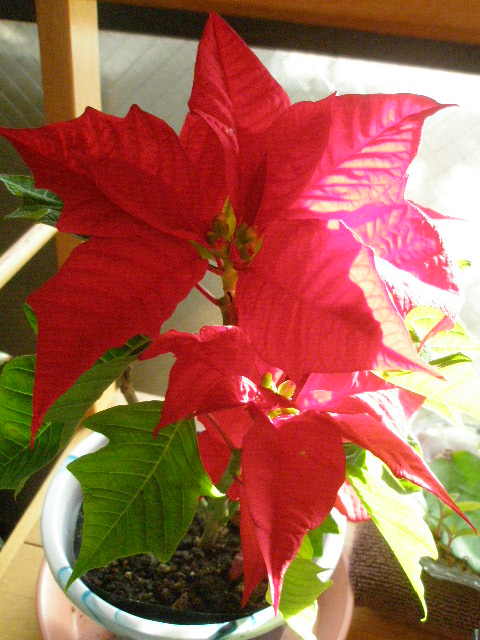 少しずつ葉っぱが散っているポインセチア。管理難しそうね。