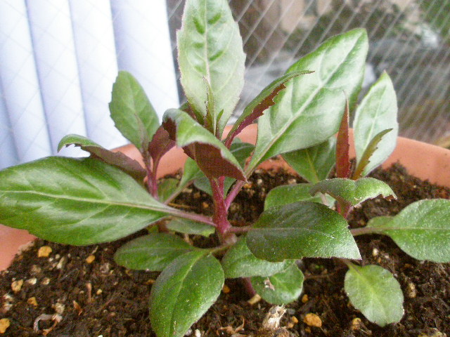 金時草の鉢にイソトマがポツポツ発芽していますが、何故かすぐ消滅しちゃうの(汗)