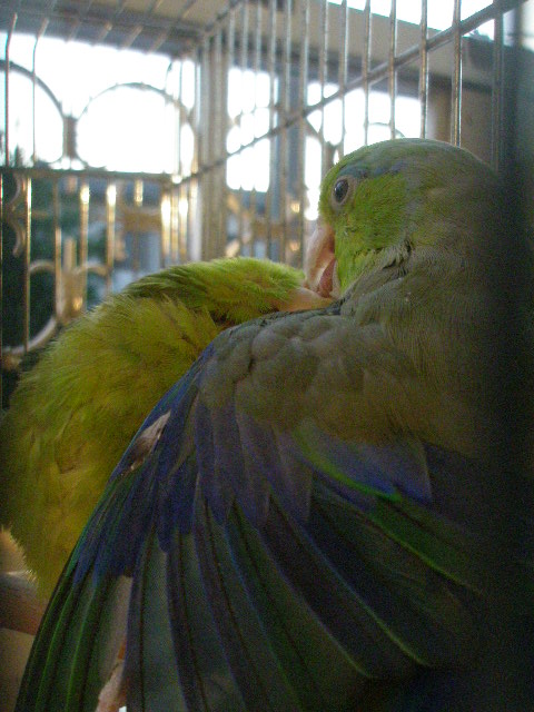 2羽のマメルリハインコの日常やベランダの様子