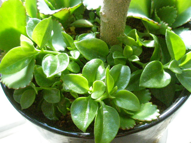 根元には子宝草とベビーサンローズを。
