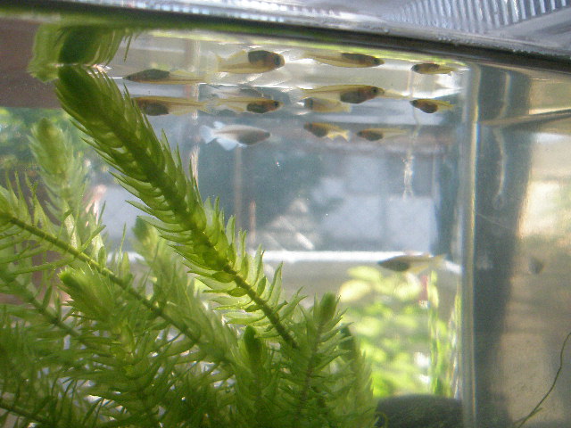 最近全然姿を見せないので水草を掻き分けて探してみると、底の方で縮こまってました(汗)