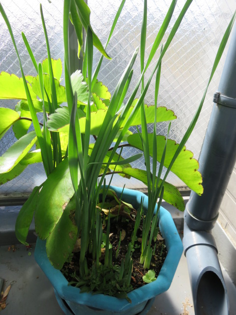半日陰で放置の水仙。葉がぐーーーーーんと伸びました。そろそろ良い場所に移動させなきゃね。
