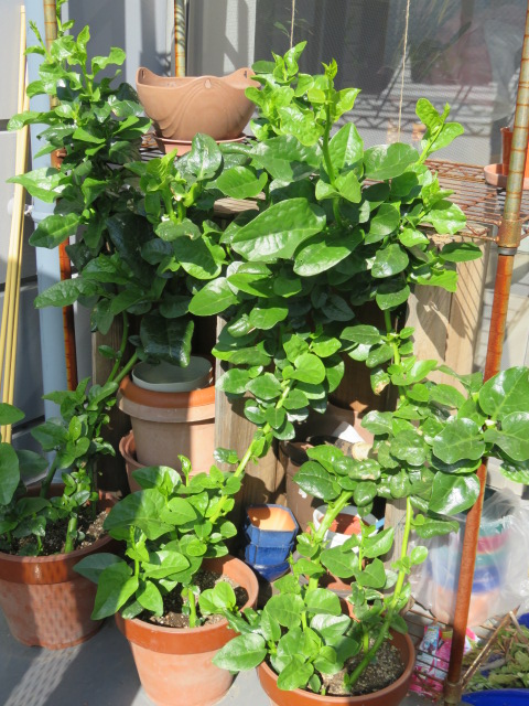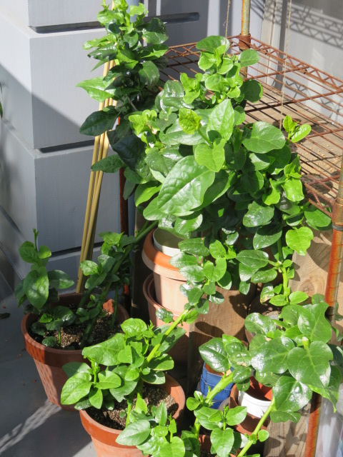肥料が効いたのか?この気候が快適なのか?ぐんぐん生長するツルムラサキ。