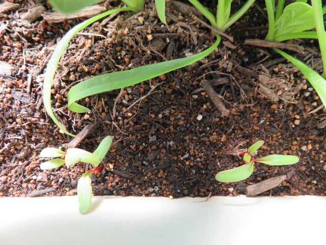 隙間からは、もう死んだと思っていたスイスチャードが発芽しています。発芽率50%以下かな・・・