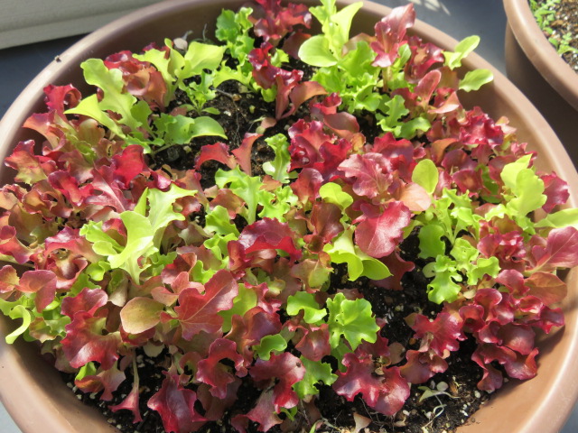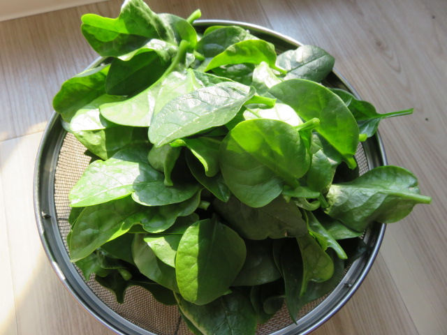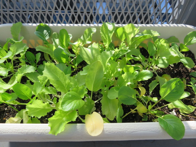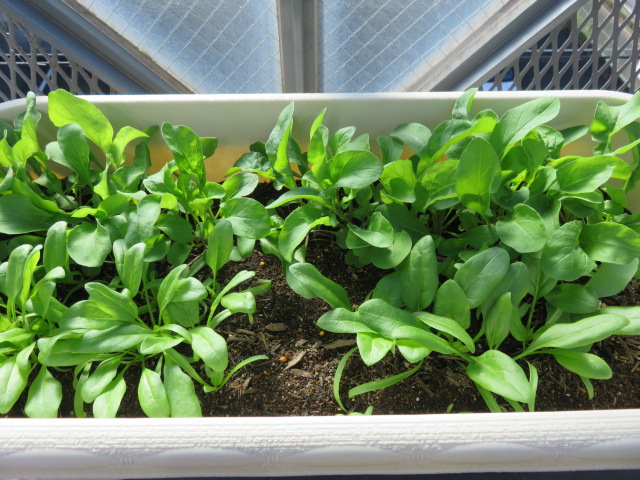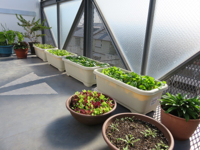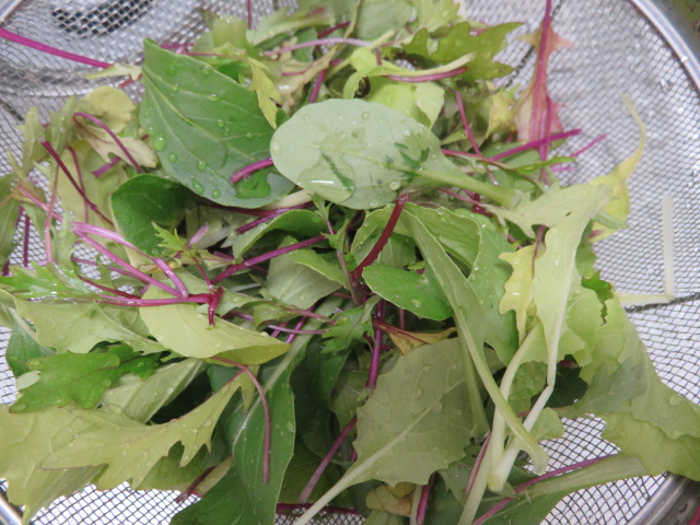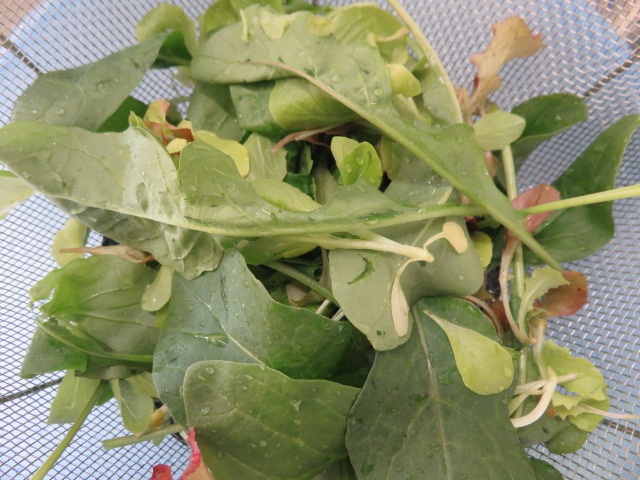 ルッコラ、ほうれん草、レタスを収穫しサラダでいただきました。