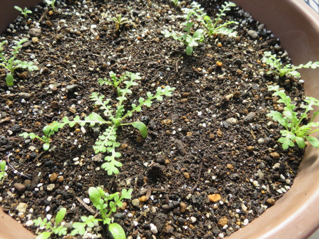 パセリと同じ鉢に適当に蒔いたダールデルグデージーが発芽してきました。