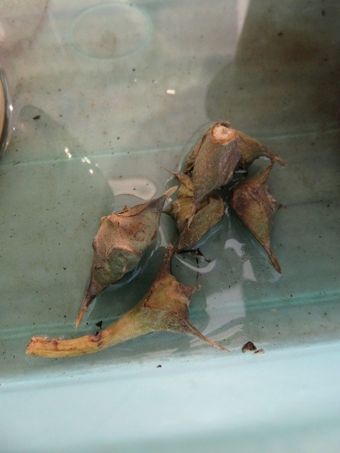 夏頃、折れちゃって水挿ししていたブラシの木2本。